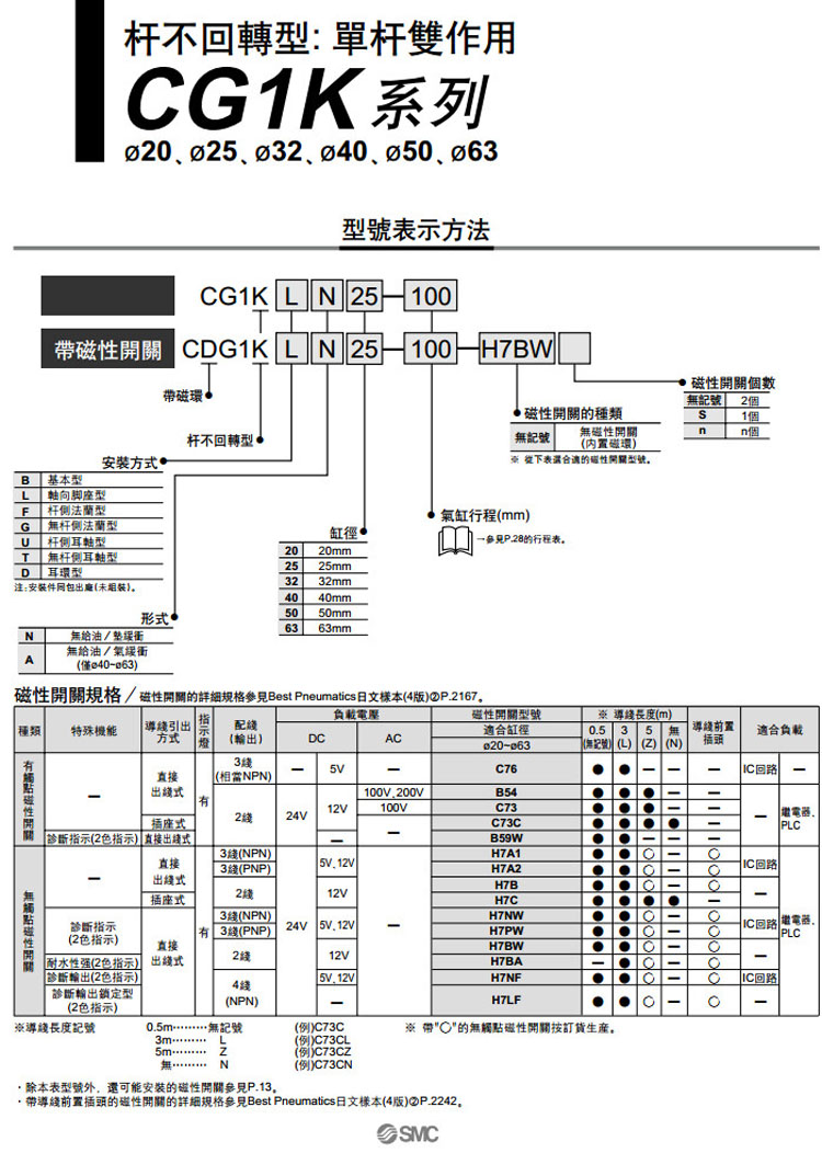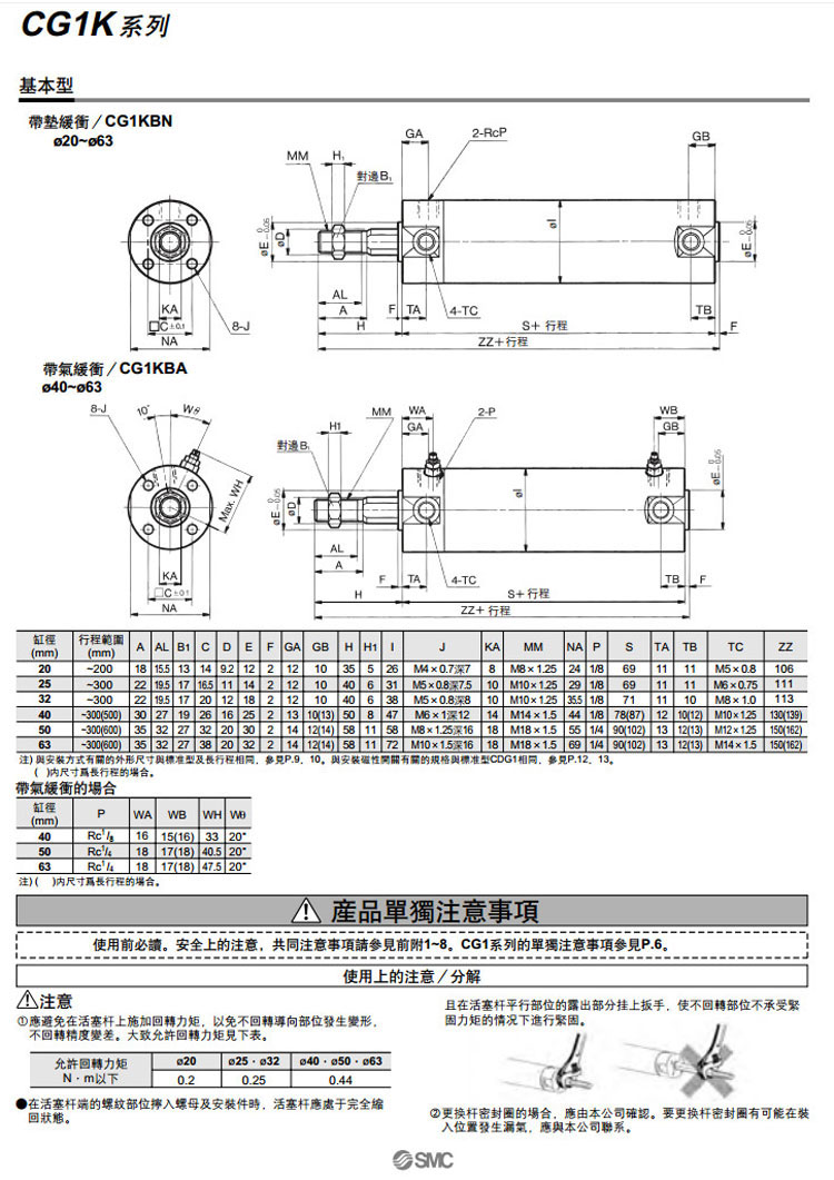 CG1KBN20-25,CG1KLN20-25,CG1KFN20-25,CG1KGN20-25,CG1KUN20-25,CG1KTN20-25,CG1KDN20-25,SMC桿不回轉型氣缸