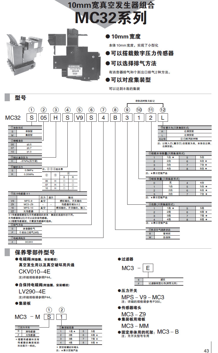 MC32-S-05,MC32-S-07,MC32-S-10,MC32-M-05,MC32-M-07,MC32-M-10,真空發(fā)生器組合