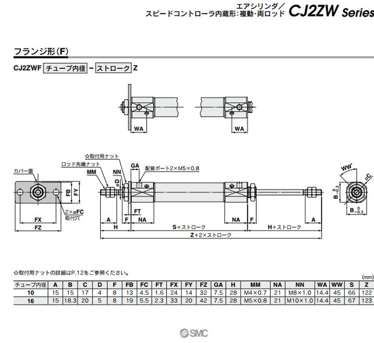 CJ2ZWB10-15Z,CJ2ZWL10-15Z,CJ2ZWF10-15Z,CDJ2ZWB10-15Z,CDJ2ZWL10-15Z,CDJ2ZWF10-15Z,SMC標準型氣缸