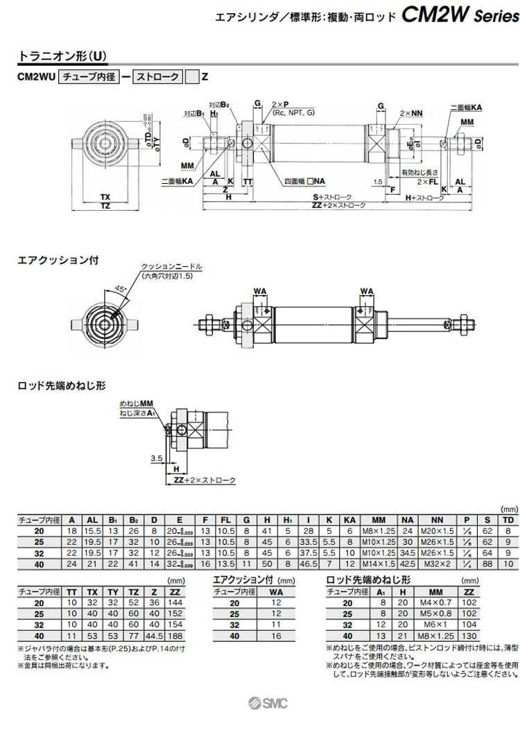 CM2WF20-300,CM2WF25-300,CM2WF32-300,CM2WF40-300,CM2WU20-300,CM2WU25-300,CM2WU32-300,CM2WU40-300,SMC標準型氣缸