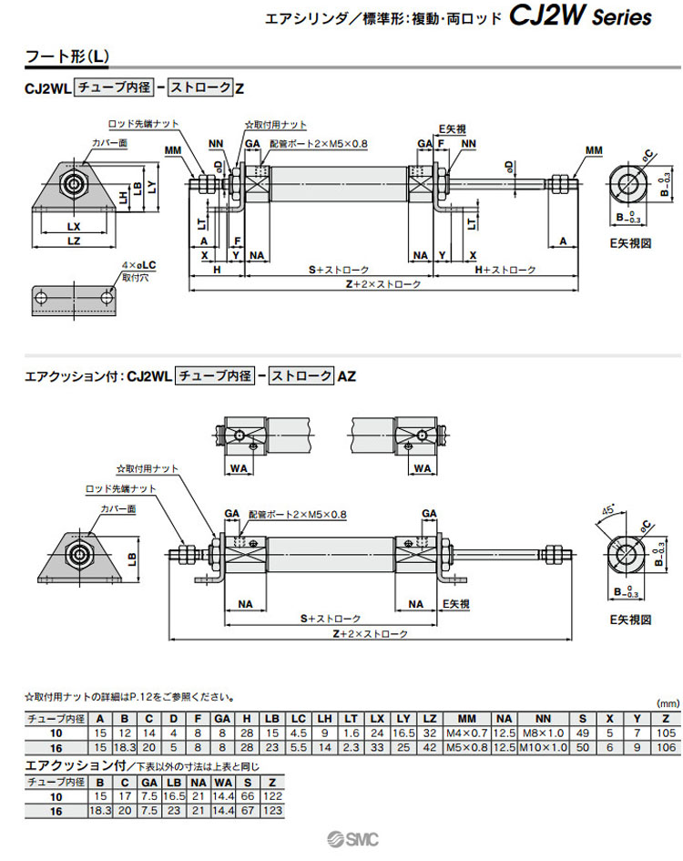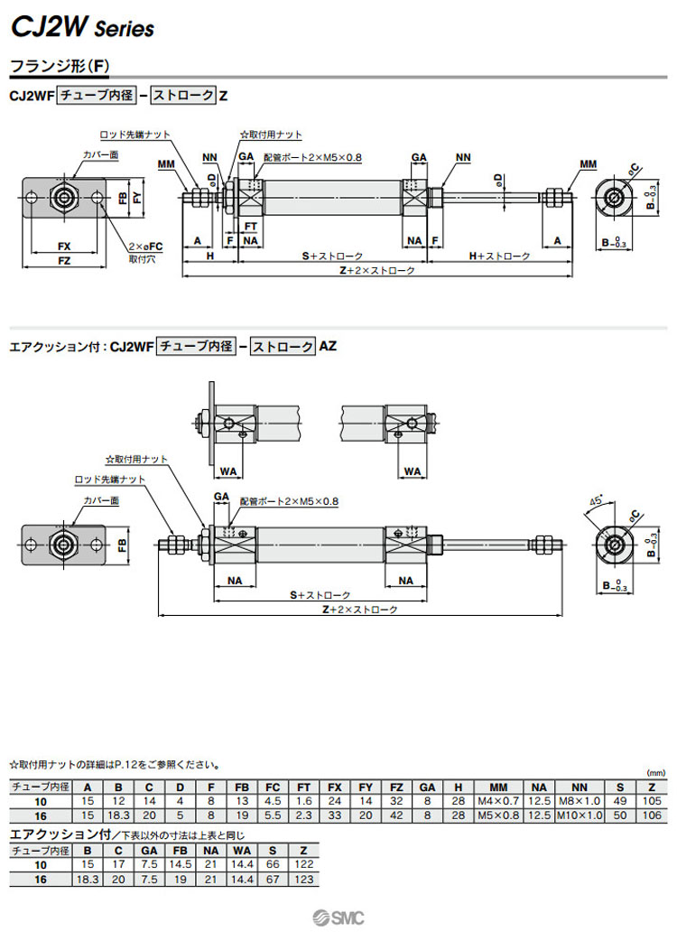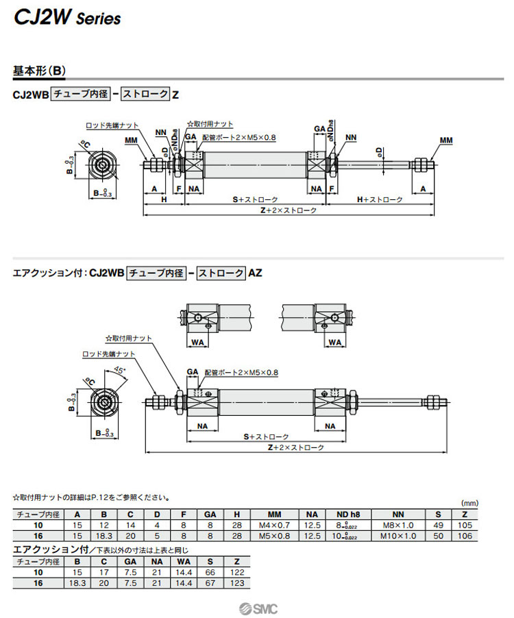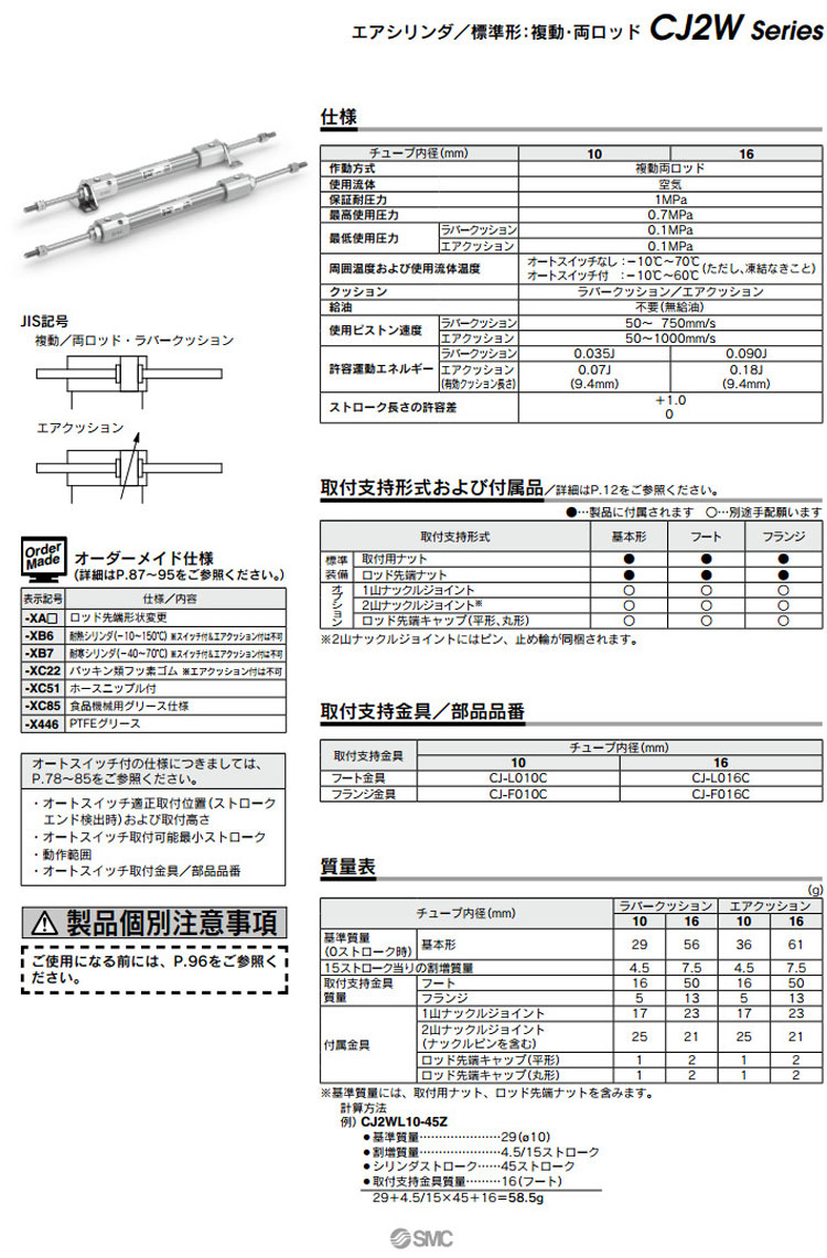 CJ2WB10,CJ2WL10,CJ2WF10,CJ2WB16,CJ2WL16,CJ2WF16,CDJ2WL10,CDJ2WF10,CDJ2WB16,SMC標準型氣缸