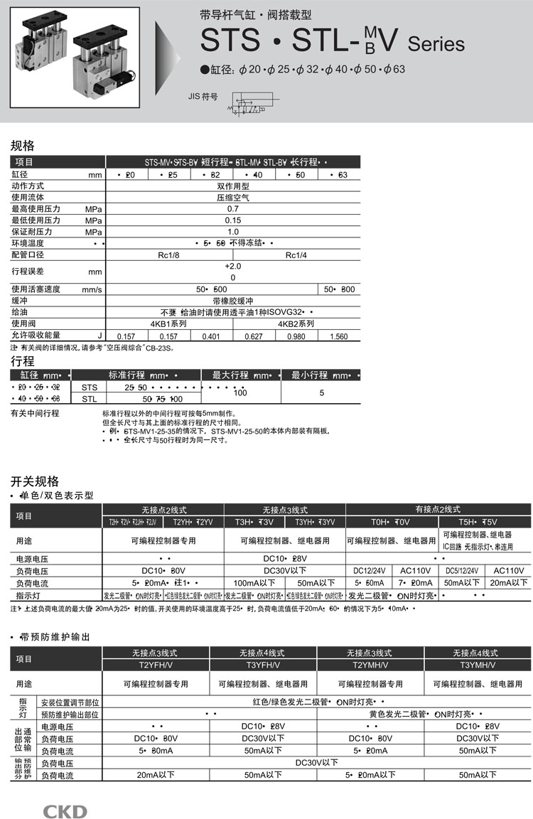 STS-MV1S,STS-MV2S,STS-BV1S,STS-BV2S,STL-MV1S,STL-MV2S,STL-BV1S,STL-BV2S,CKD帶導桿氣缸