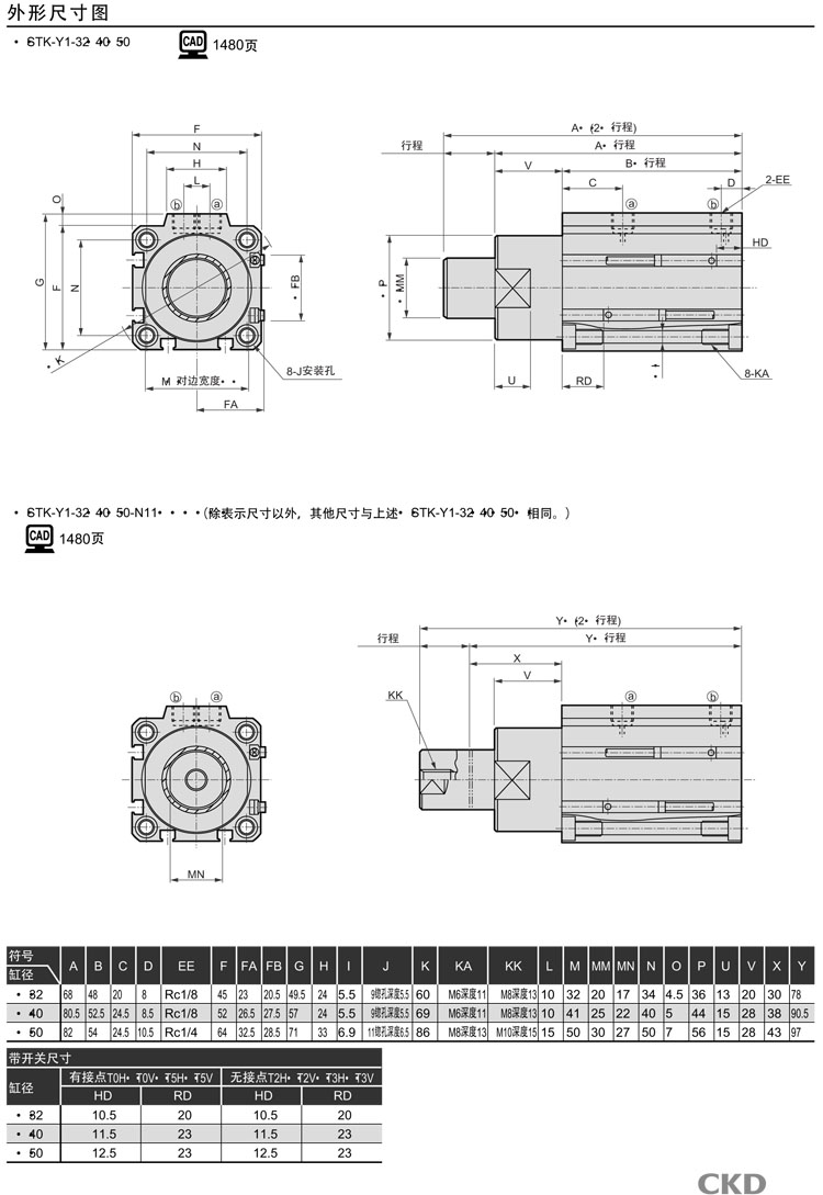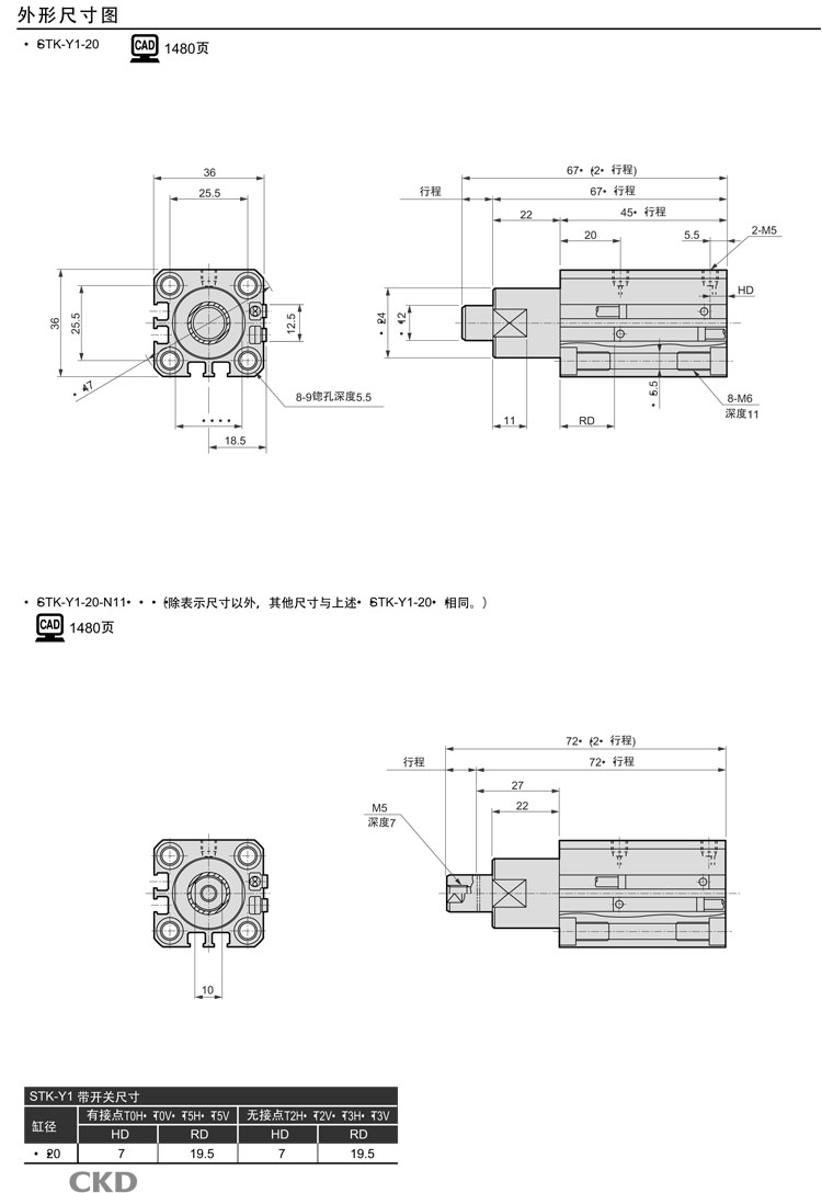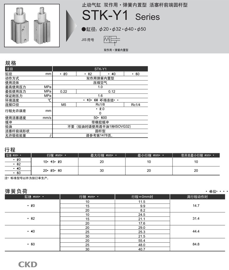 STK-Y1-20-10,STK-Y1-32-10,STK-Y1-40-20,STK-Y1-50-20,STK-Y1-20-15,STK-Y1-40-25,CKD止動(dòng)氣缸