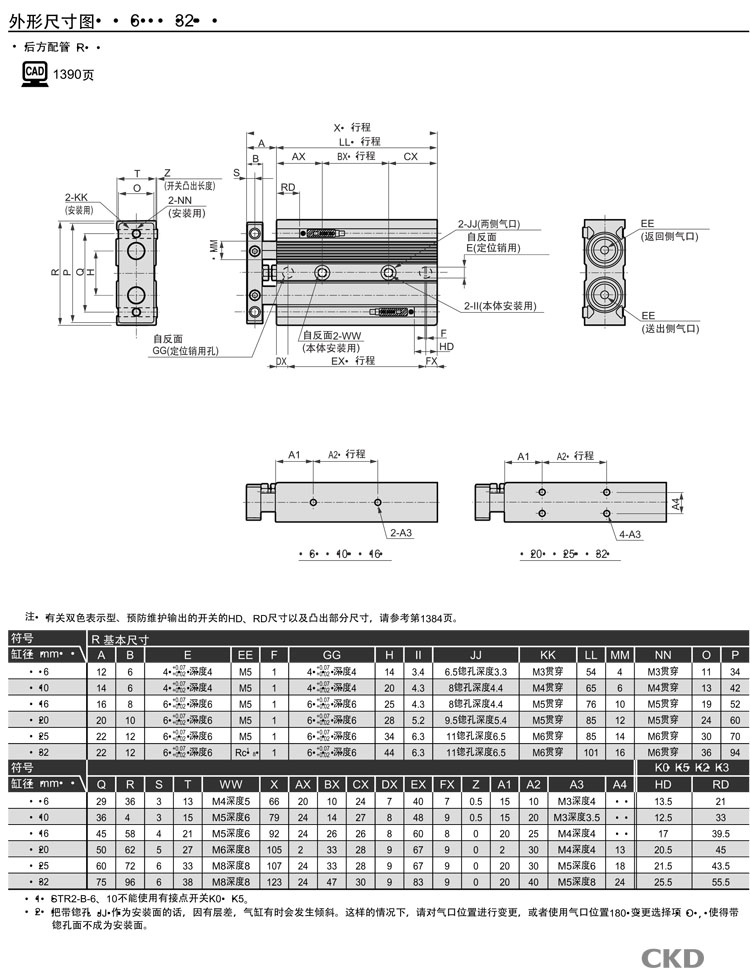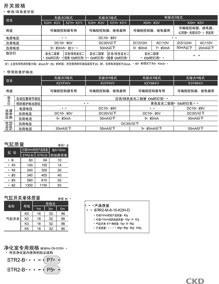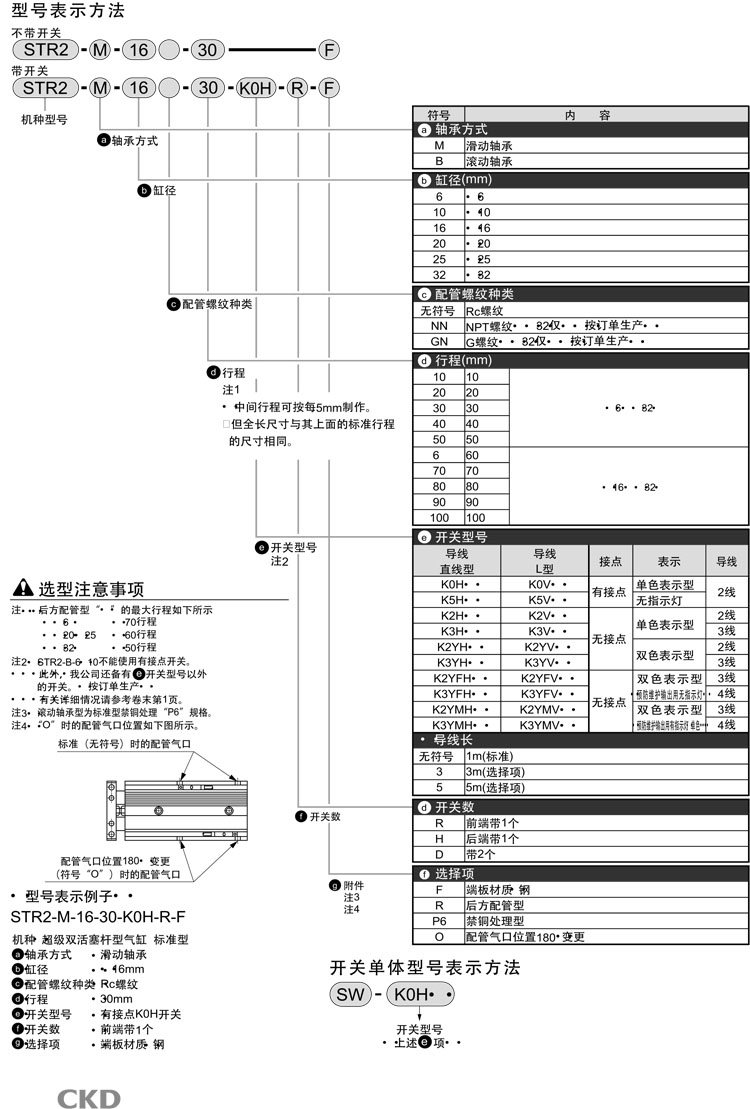STR2-M-6-10,STR2-B-6-10,STR2-M-10-10,STR2-B-10-40,STR2-B-32-100,CKD雙活塞桿型氣缸