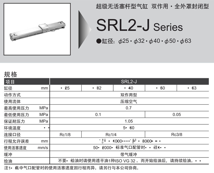 SRL2-J-00-25B,SRL2-J-00-32B,SRL2-J-LJ-40B,SRL2-J-LJ-50B,SRL2-J-LJ-63B,CKD無(wú)活塞桿型氣缸