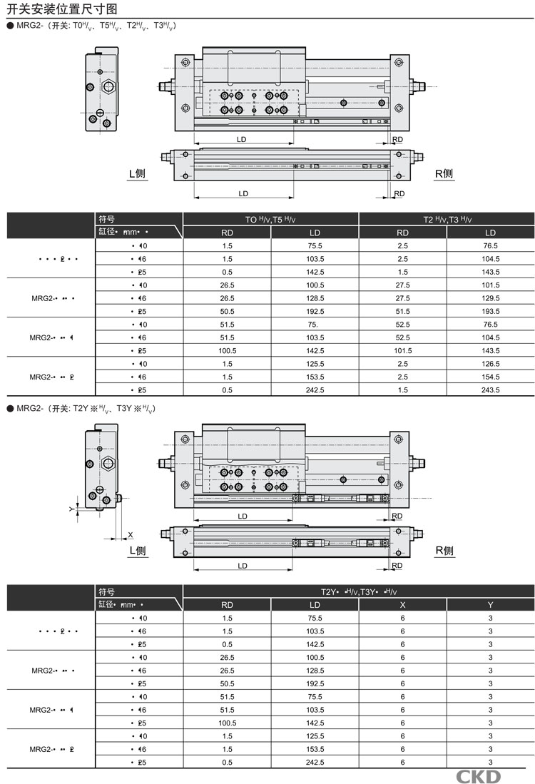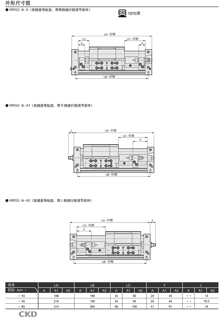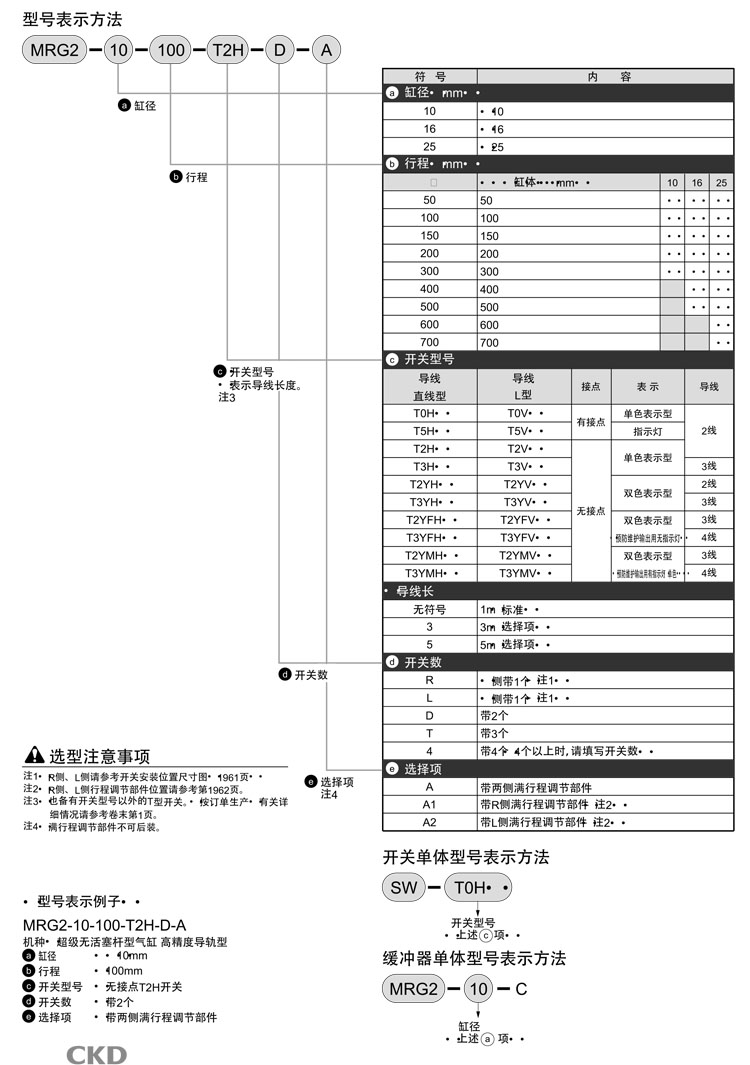 MRG2-10-50,MRG2-16-50,MRG2-25-50,MRG2-10-100,MRG2-16-100,MRG2-25-100,CKD超級活塞桿型氣缸
