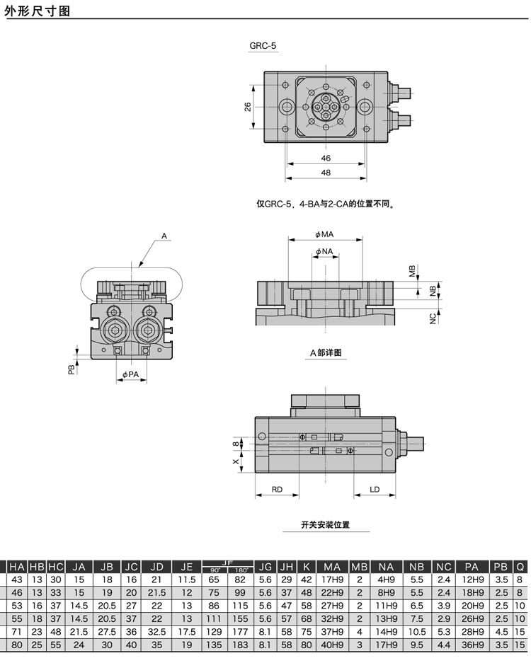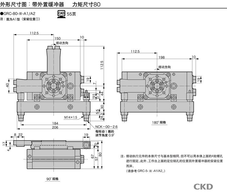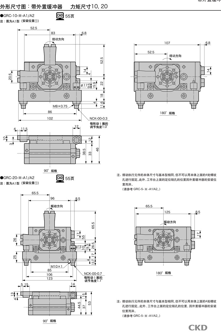 GRC-5,GRC-10,GRC-20,GRC-30,GRC-50,GRC-80,GRC-K-10,GRC-K-20,GRC-K-30,GRC-K-50,GRC-K-80,CKD臺式擺動(dòng)氣缸
