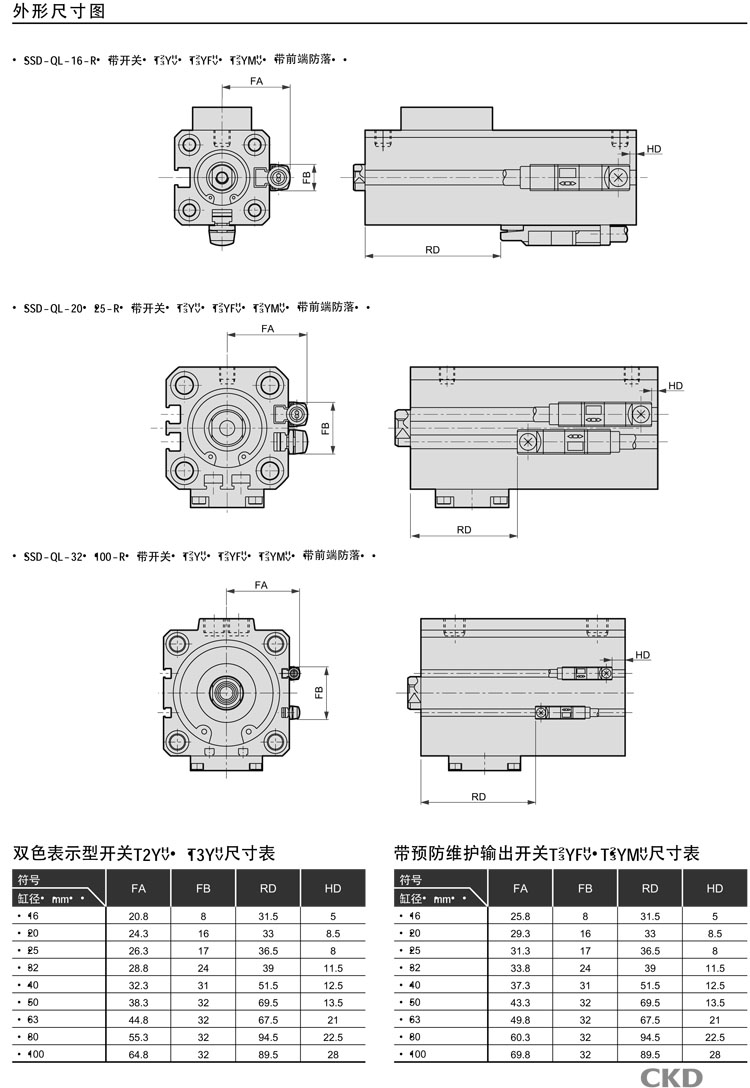 SSD-Q-16,SSD-Q-20,SSD-Q-25,SSD-Q-32,SSD-Q-40,SSD-Q-50,SSD-Q-63,SSD-Q-80,SSD-Q-100,CKD超緊湊型氣缸