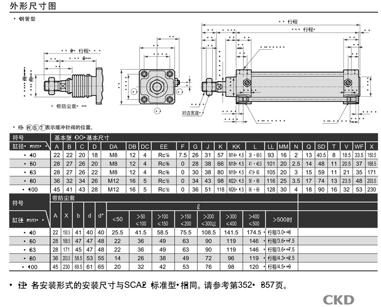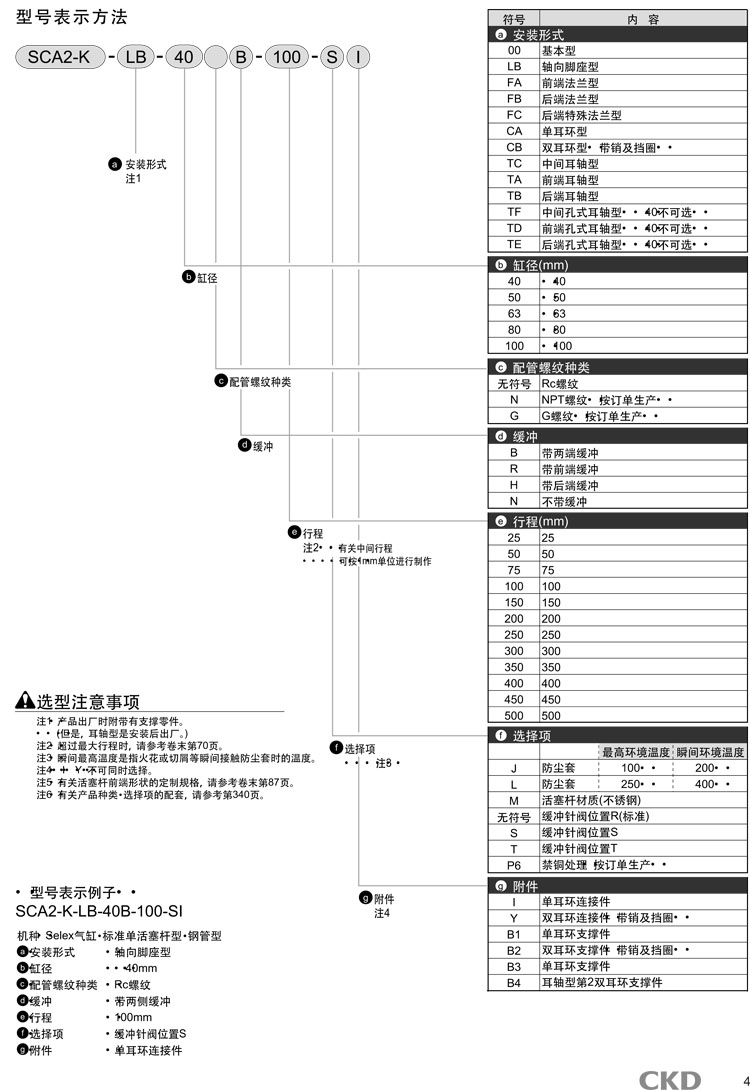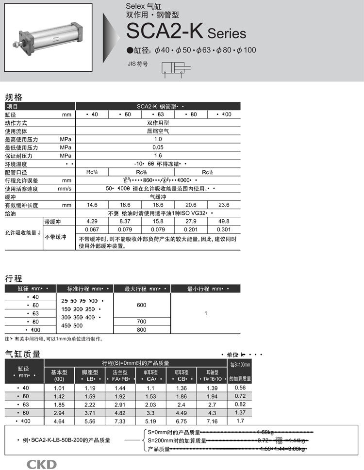 SCA2-K-TD-100B-450,SCA2-K-TD-100B-500,SCA2-K-TE-100B-450,SCA2-K-TE-100B-500,SCA2-K-00-40B-150,CKD Selex氣缸