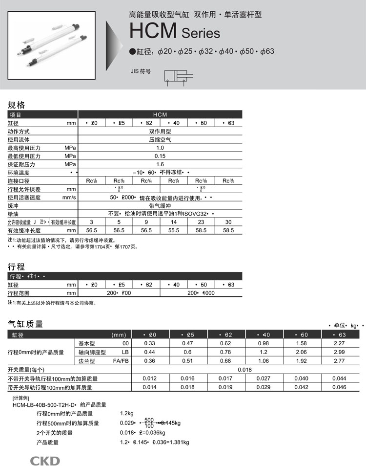HCM-FA-63B-800,HCM-FA-63B-850,HCM-FA-63B-900,HCM-FA-63B-950,HCM-FA-63B-1000,HCM-FB-63B-900,CKD高能量吸收氣缸