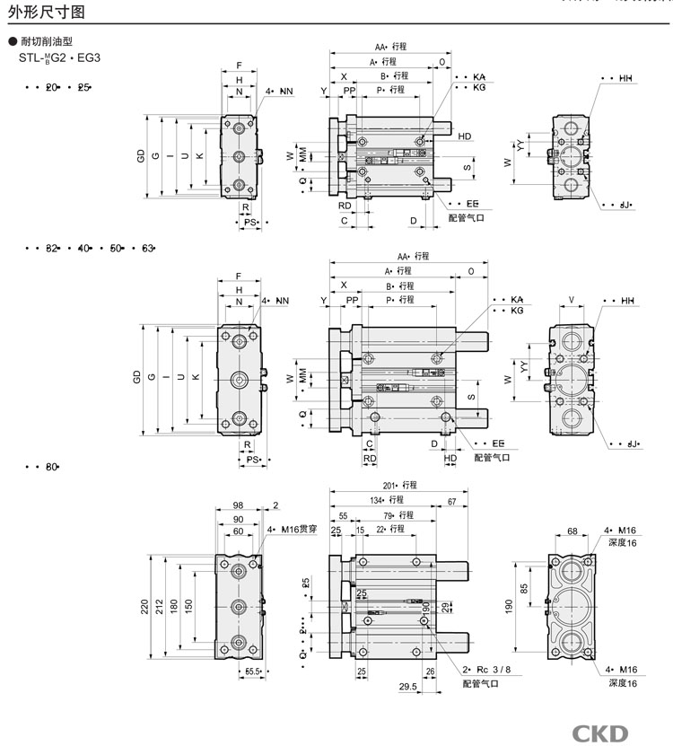 STL-BG2-32-400,STL-BG2-25-400,STL-BG2-40-400,STL-BG2-50-400,STL-BG2-63-400,STL-BG2-80-400,CKD帶導桿氣缸