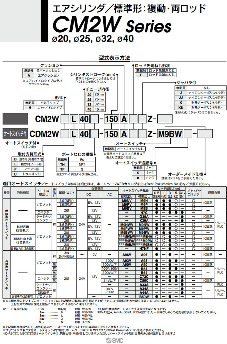 CM2WB,CM2WL,CM2WF,CM2WU,CM2WHB,CM2WHL,CM2WHF,CM2WHU,CM2WHL40-25,SMC標準型氣缸