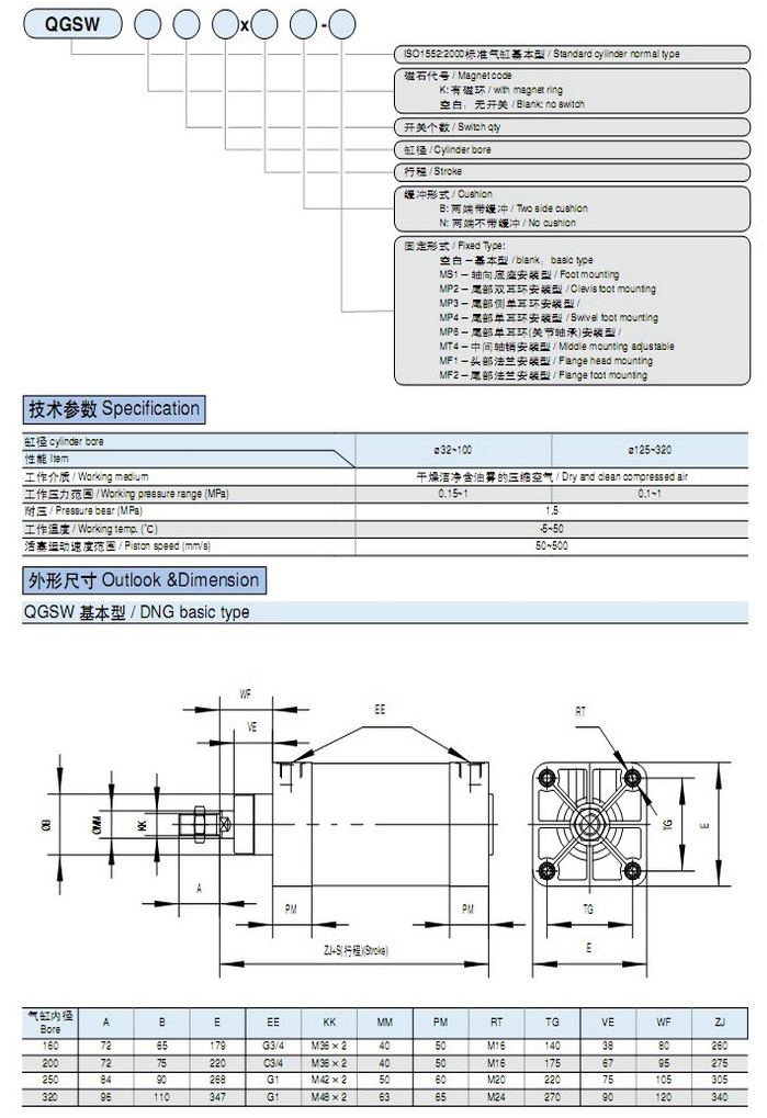 QGSW系列氣缸是歐洲型輕型氣缸,結構緊湊,安裝形式和尺寸符合ISO15552國際標準,具有工作可靠,耐久性好,互換性強的特點(diǎn)。