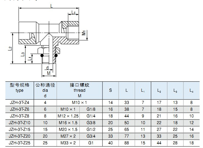 JZH-3T-Z4,JZH-3T-Z6,JZH-3T-Z8,JZH-3T-Z10,JZH-3T-Z15,JZH-3T-Z20,JZH-3T-Z25,組合式三通終端管接頭