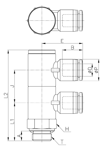 | Model | ∅D | ∅P | T | L1 | L2 | E | A | B | J | H(Hex) | ORIFICE | WEIGHT(g) | EA(BOX) |