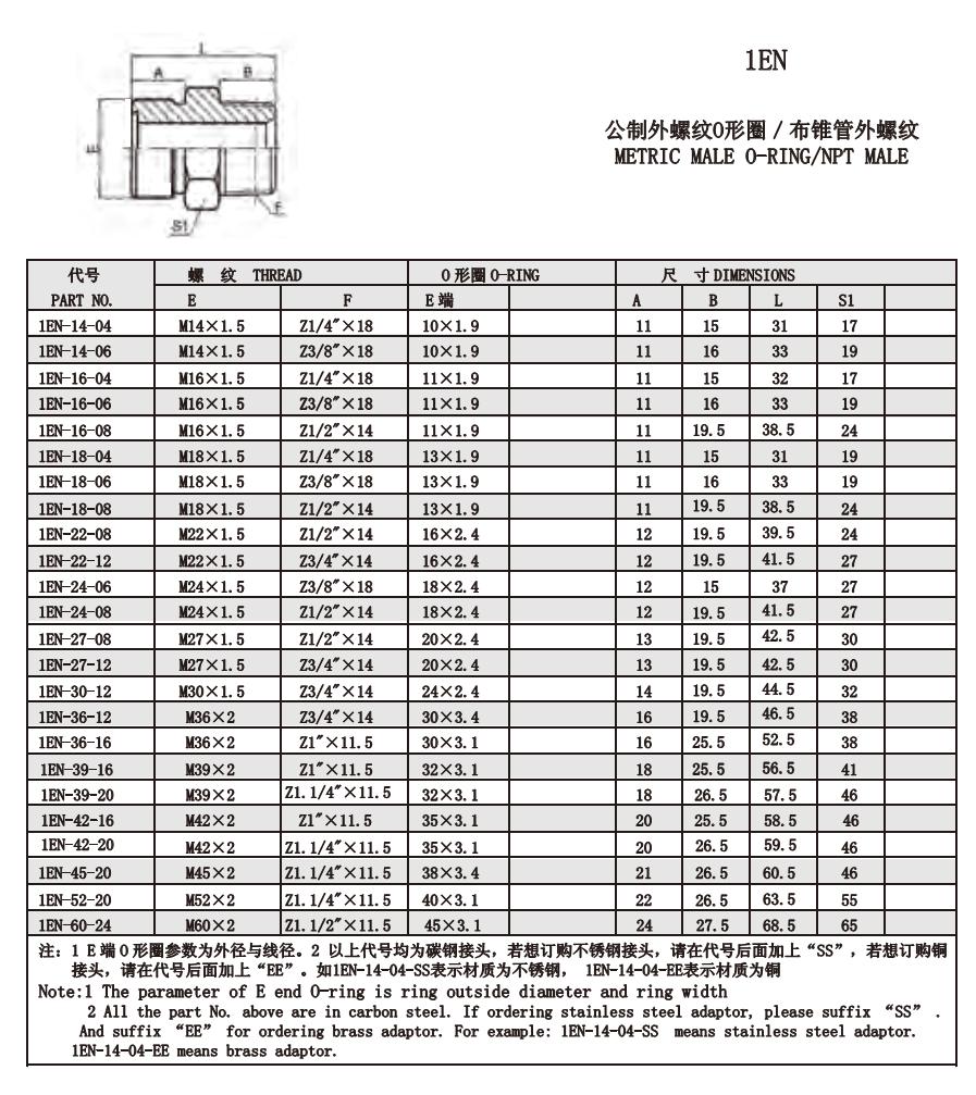 1ET-14,1ET-16,1ET-18,1ET-22,1ET-24,1ET-27,1ET-30,1ET-45,1ET-52,1EN-60,平面密封接頭