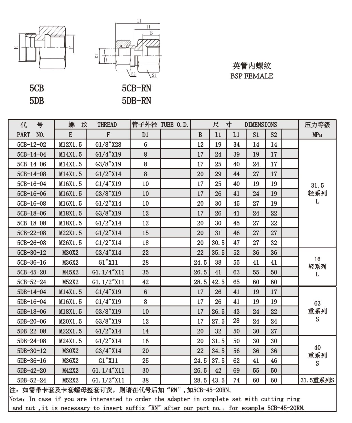 5CB-12-02,5CB-14-04,5CB-16-04,5DB-18-06,5DB-20-06,5DB-22-08,公制螺紋卡套接頭