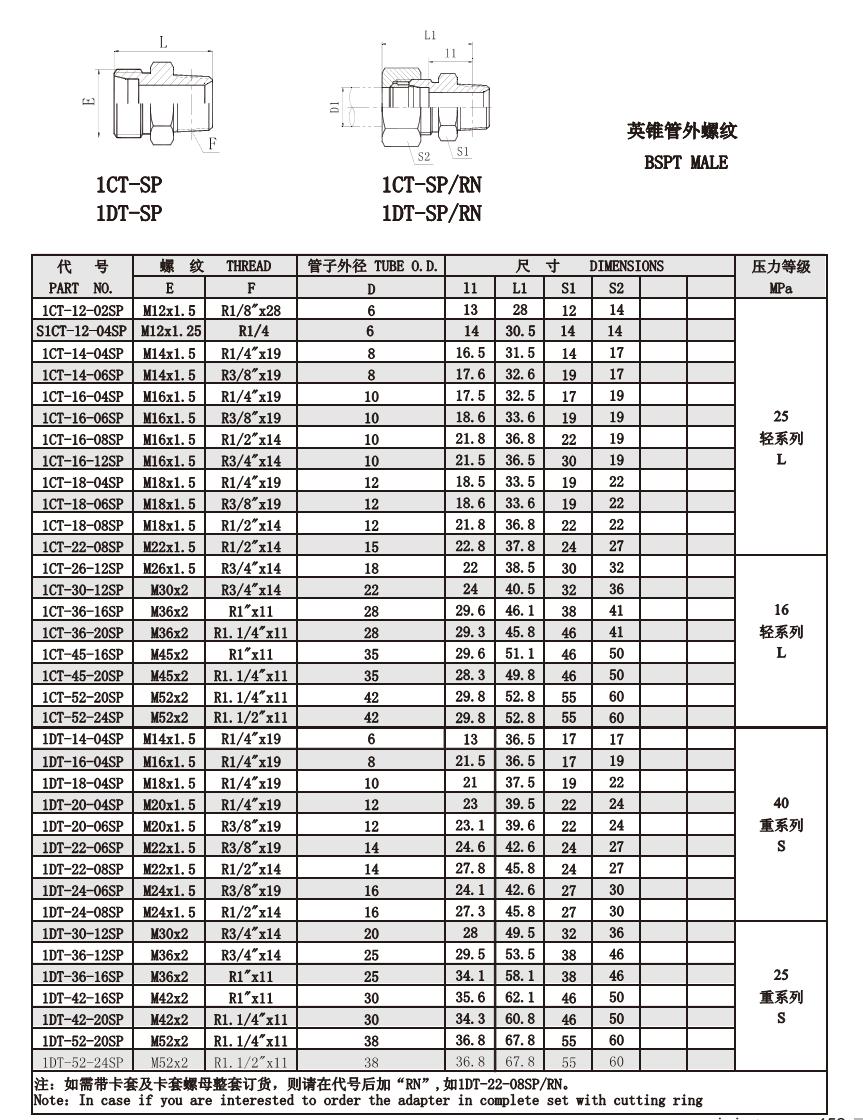 1CT-12-02SP,1CT-14-04SP,1CT-22-08SP,1DT-36-16SP,1DT-42-16SP,1DT-52-20SP,公制螺紋卡套接頭