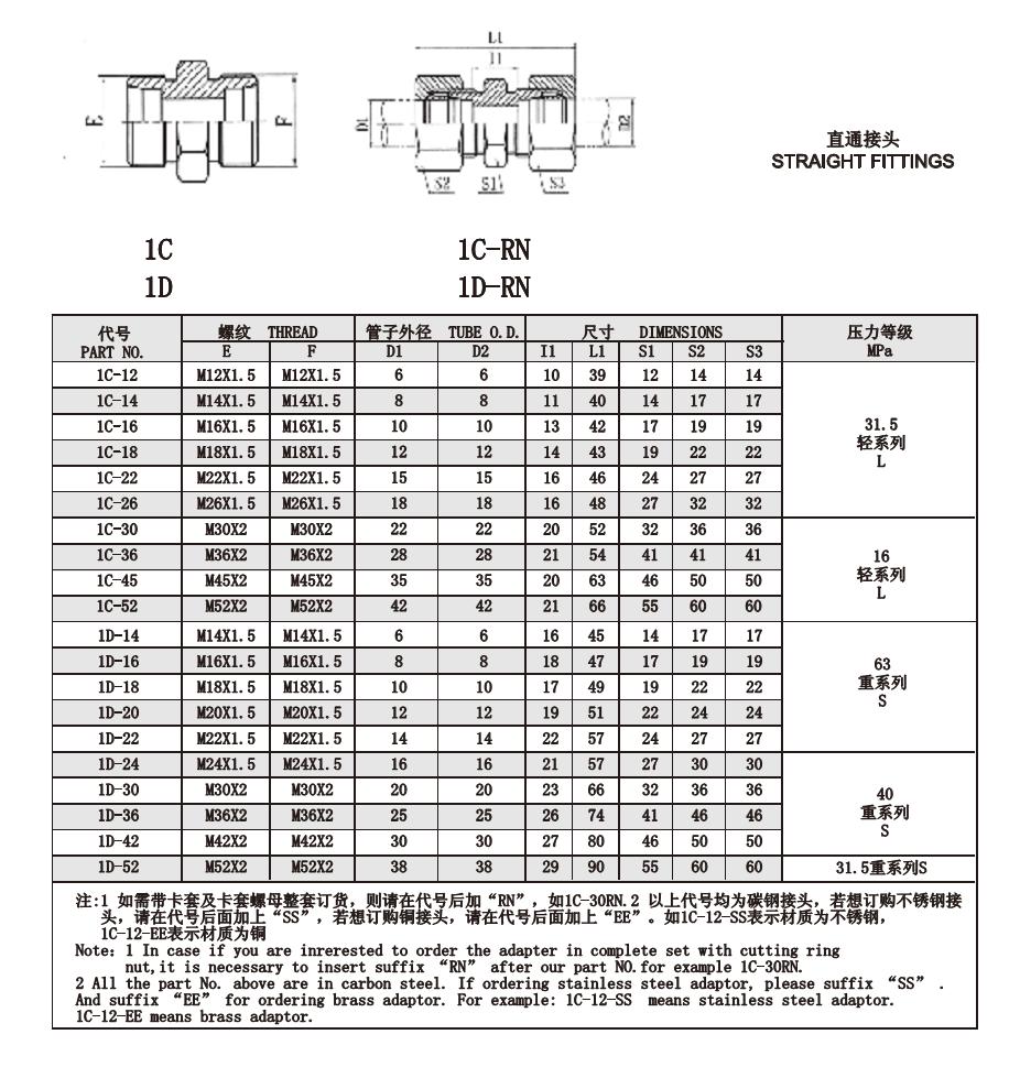1C-12,1C-22,1C-30,1C-45,1D-14,1D-20,1C-52,1D-36,1D-42,1D-52,直通接頭