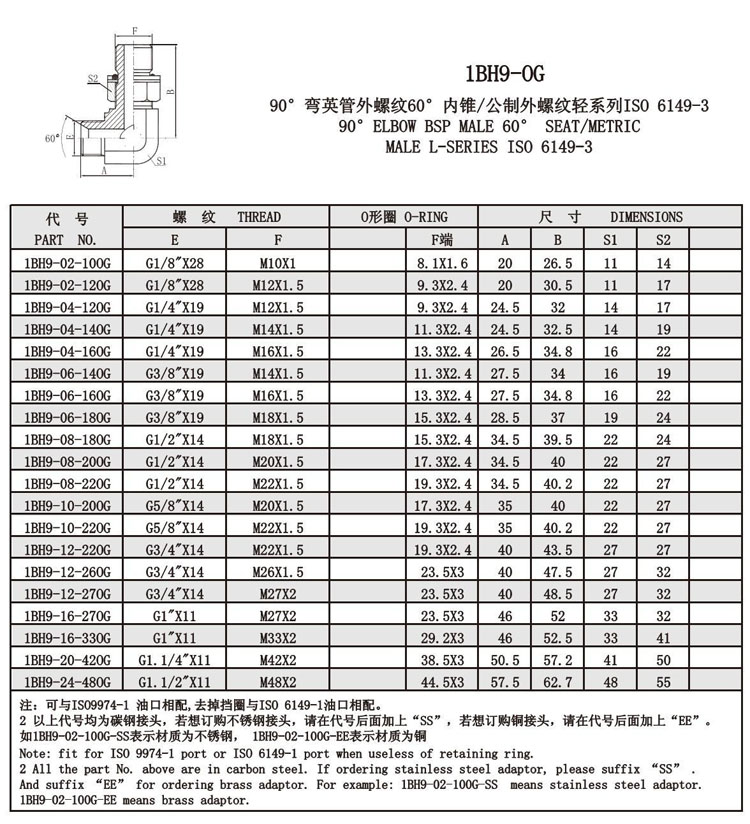 1BH9-02-100G,1BH9-02-120G,1BH9-04-120G,1BH9-04-140G,1BH9-04-160G,1BH9-06-140G,錐面密封接頭