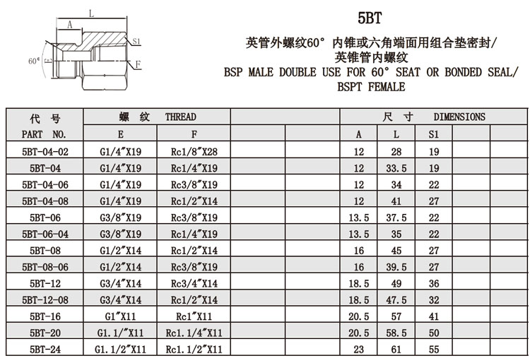 5BT-04,5BT-04-08,5BT-06,5BT-08,5BT-12,5BT-16,5BT-20,5BT-24,內螺紋接頭