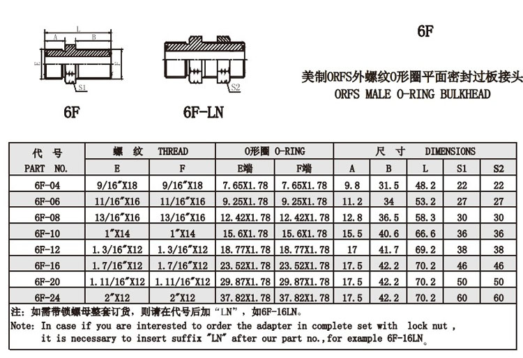 6F-04,6F-06,6F-08,6F-10,6F-12,6F-16,6F-20,6F-24,平面密封過(guò)板接頭