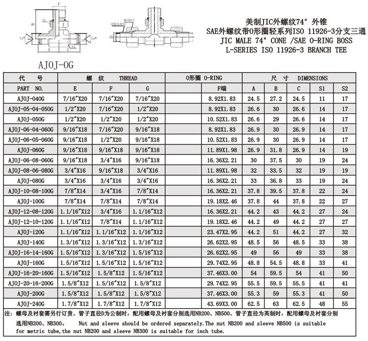 AJ0J-040G,AJ0J-050G,AJ0J-080G,AJ0J-100G,AJ0J-140G,AJ0J-160G,AJ0J-200G,AJ0J-240G,美制螺紋74°錐面接頭