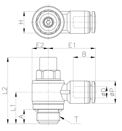 | Model | ∅D | ∅P | T | L1 | L2 | E1 | E2 | A | B | H(Hex) | WEIGHT(g) | EA(BOX) |