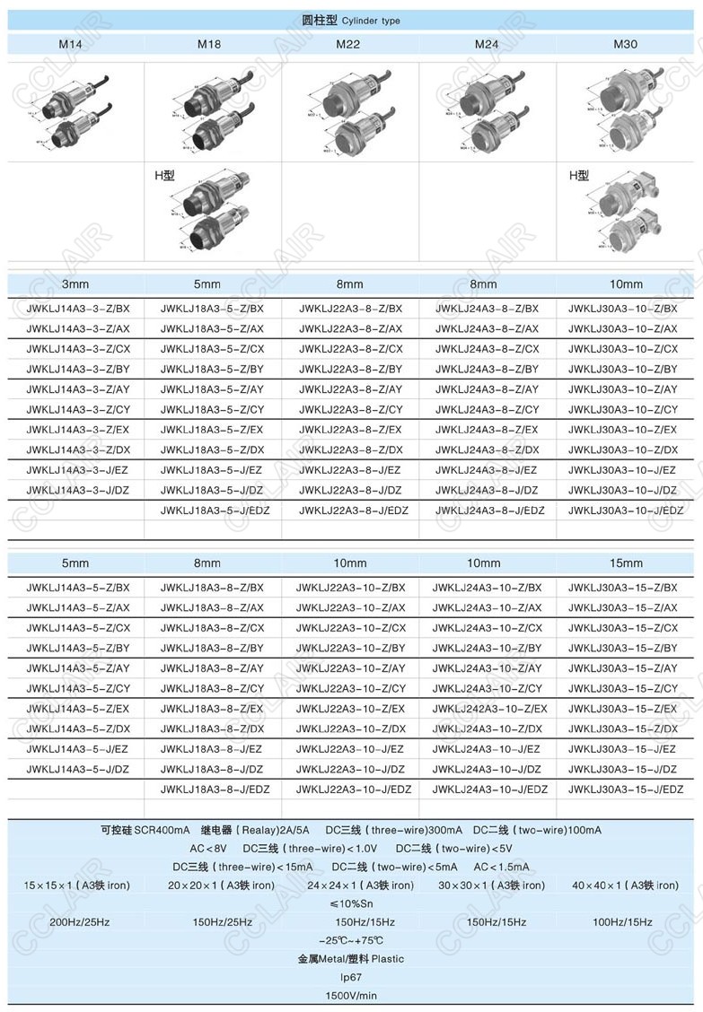 JWKLJ14A3-3-Z/BX,JWKLJ14A3-3-Z/AX,JWKLJ18A3-8-J/EZ,JWKLJ30A3-15-J/EDZ,接近開(kāi)關(guān)