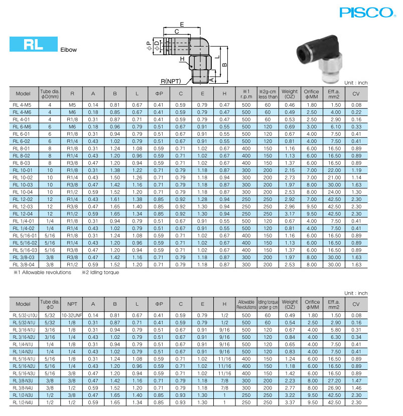 RL4-M5,RL6-M6,RL8-01,RL10-01,RL12-02,RL1/4-01,RL5/16-01,RL3/8-03,PISCO旋轉型接頭