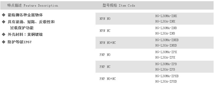 L30A圓柱型接近開(kāi)關(guān) HG-L30MA-ZNK,HG-L30A-ZNK,HG-L30MA-ZNB,HG-L30A-ZNB,HG-L30MA-ZNKB,