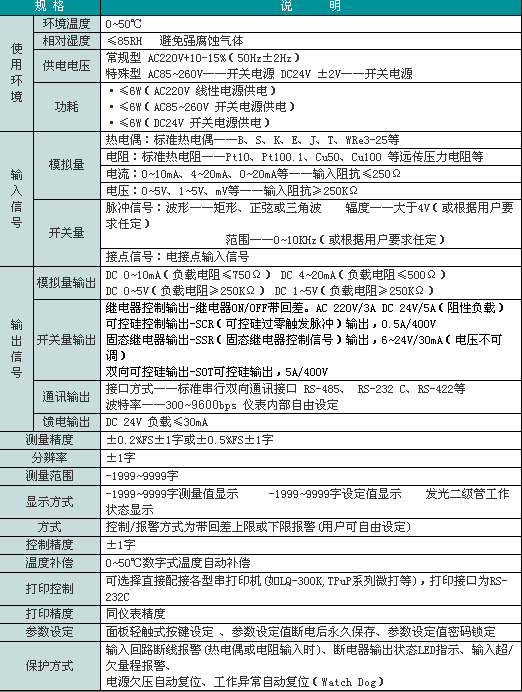 SWP-LED系列單回路數字/光柱顯示控制儀采用微處理器進(jìn)行控制運算,可對各種非線(xiàn)性輸入信號進(jìn)行精度極高的線(xiàn)性矯正測量。該儀表集數字儀表與模擬儀表于一體,可對溫度、壓力、液位、速度等測量信號進(jìn)行數字量顯示控制(高亮度LED數碼顯示)及相對模擬量顯示(光柱顯示),使測量值的顯示更為清晰直觀(guān),并可選擇雙光柱顯示方式。