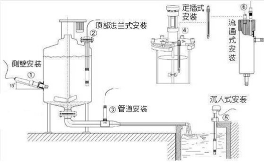 為保證電極在管路上正確測量出pH值,應避免測量池間出現氣泡而造成數據失準,請嚴格按下圖安裝