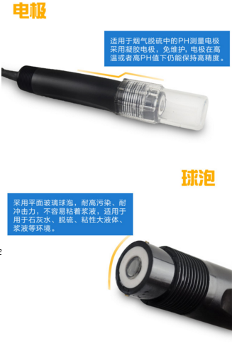 LR-PH5030用于石灰水、脫硫、粘性大液體、漿液等環(huán)境,使用方便,可較少次數的清洗,平頭PH電極,不容易粘著(zhù)漿液,適合條件惡劣的環(huán)境檢測。