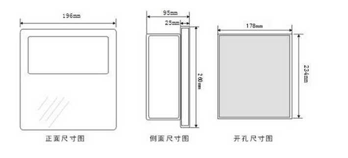 五、產(chǎn)品尺寸圖:外形尺寸:260×196×95;開(kāi)孔尺寸:234×178