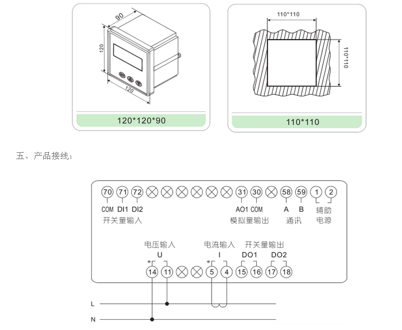 擴展:AC5A以上需配電流互感器,AC500V以上需配電壓互感器,現場(chǎng)可編程設置輸入參數變比。