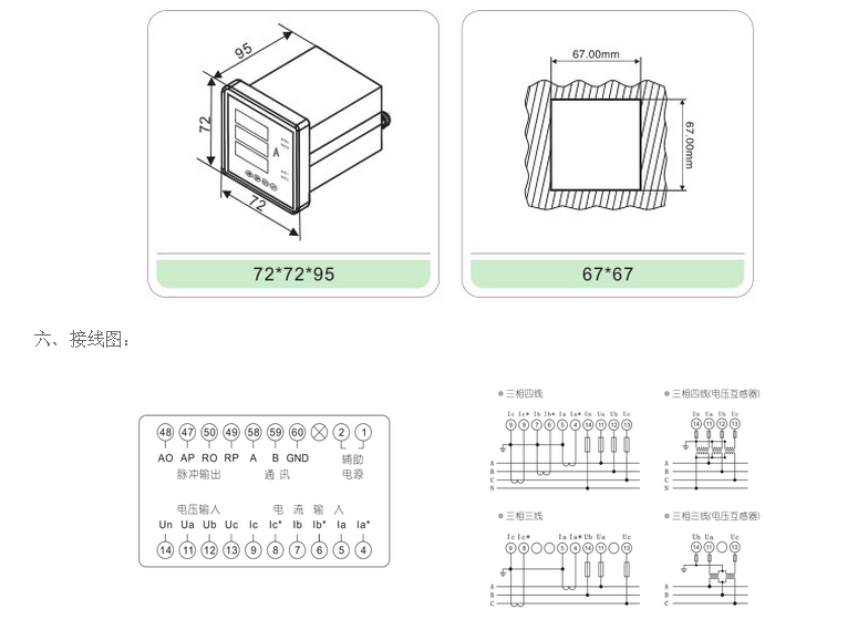 五、開(kāi)孔尺寸:67*67