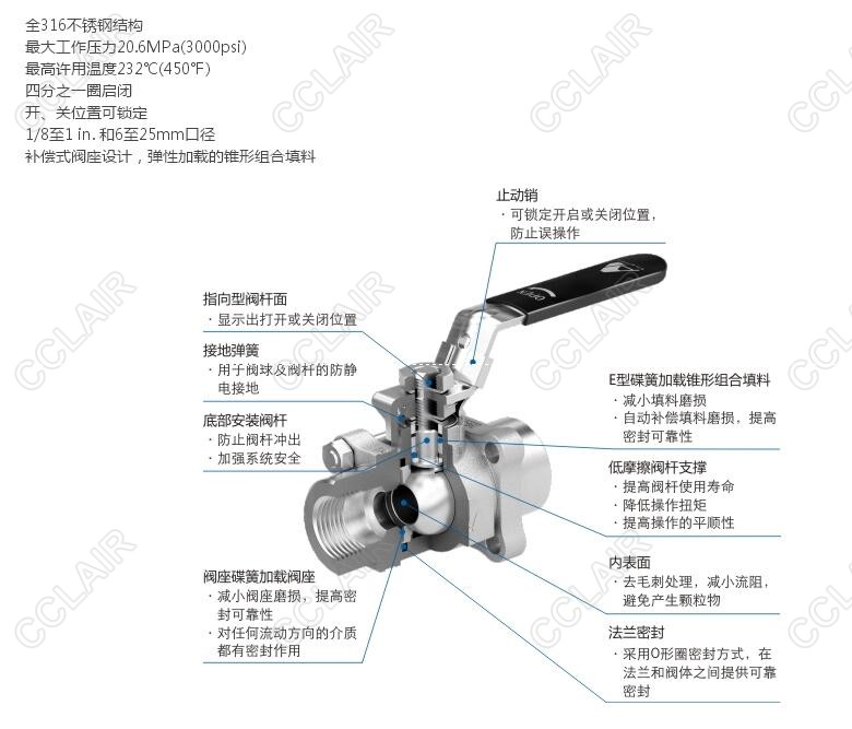 補償式閥座設計保證了球閥具有可靠的密封。在低壓情況下,密封由閥座碟簧加載閥座獲得。在高壓情況下,閥