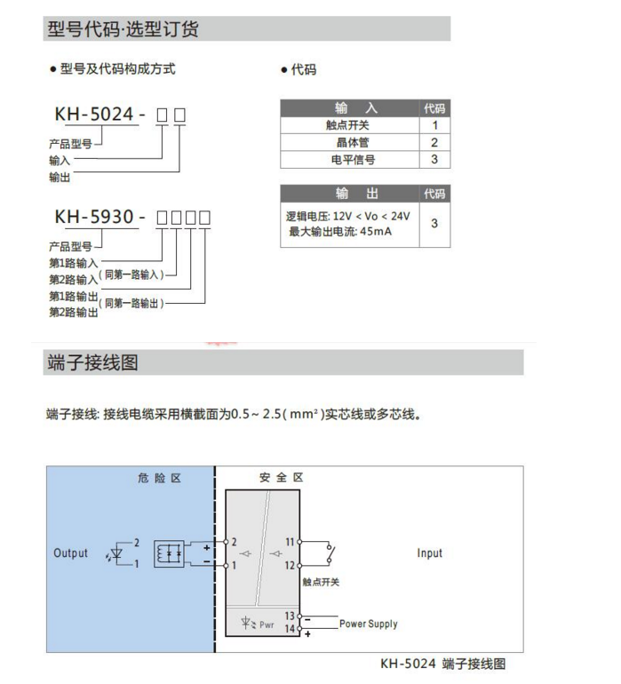 輸入特性: 輸入開(kāi)關(guān)閉合或晶體管導通, 向危險區設備供電。