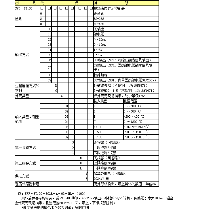 SWP-ET100溫度現場(chǎng)變送控制器是本公司推出新一代先進(jìn)的現場(chǎng)變送單元。采用鋁合金外殼進(jìn)口的高精度鉑電阻傳感器或熱電阻傳感器,抗腐蝕,抗過(guò)載,穩定性好,精度高,集測量顯示變送,控制,通訊為一體??蓱糜谑?,化工、冶金等部門(mén)各種腐蝕和非腐蝕性液體和氣體測量與控制。