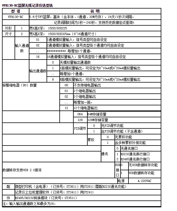 VPR130-RC藍屏無(wú)紙記錄儀以32位嵌入式CPU為核心,并輔以大規模集成電路、大容量FLASH存儲、信號智能調理、SmartBus總線(xiàn)以及高分辨率圖形液晶顯示器的新型智能化無(wú)紙記錄類(lèi)儀表。公司產(chǎn)品采用320×234真彩TFT液晶顯示屏;支持16路模擬量萬(wàn)能輸入、8路模擬輸出、12路報警輸出、16路全隔離24VDC配電輸出,設定數據與記錄數據具掉電保護功能。具有功耗低、精度高、體積小、通道數多、通用性強、可靠性高、運行穩定等特點(diǎn)。儀表采用USB Host技術(shù),支持USB 移動(dòng)存儲器的數據讀寫(xiě);采用RS-232C/RS-485通訊接口,支持標準MODBUS-RTU協(xié)議,可方便實(shí)現遠程監控。
