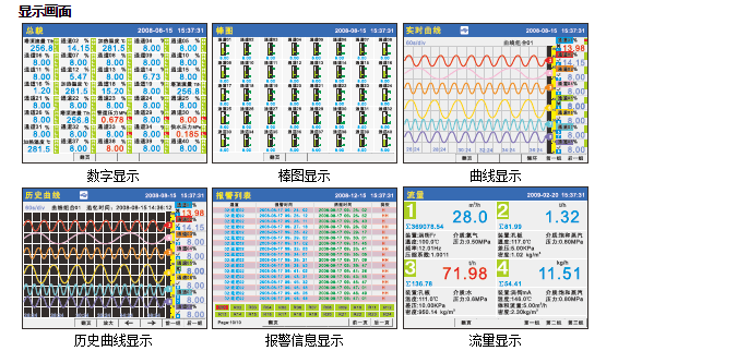 KH8100中長(cháng)圖彩屏無(wú)紙記錄儀,40路萬(wàn)能輸入,可輸入標準電流、標準電壓、頻率、毫伏、熱電偶、熱電阻等信號。具有傳感器隔離配電輸出、繼電器報警輸出、變送輸出、流量積算、溫壓補償、歷史數據轉存、打印以及遠程通訊功能。