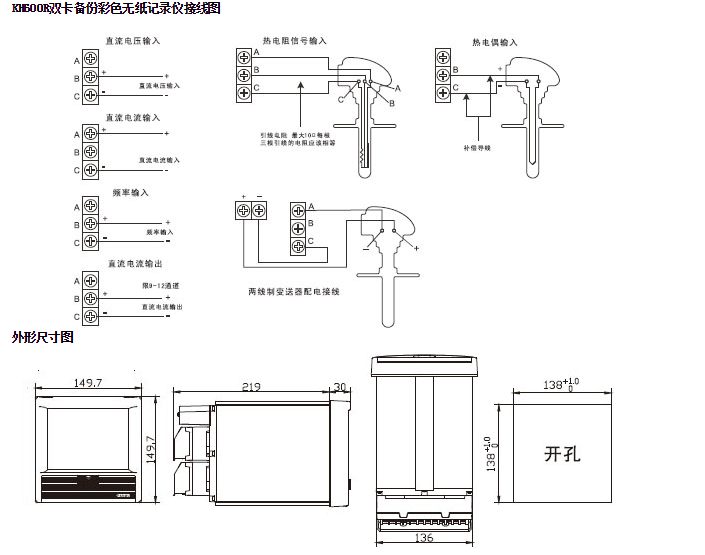 | 一般規格 構造 安裝方法:嵌入式儀表安裝(垂直儀表盤(pán)) 允許向后最大傾30度安裝,左右水平 儀表盤(pán)厚度: 外型尺寸: 凈重: 電源部分 額定電源電壓:220V 允許電壓范圍:85VAC~265VAC 允許頻率范圍:47~63Hz 功耗:最大20W(包括選配功能) 輸入部分 輸入通道: 1~16通道 測量通道: 1秒 轍入種類(lèi)