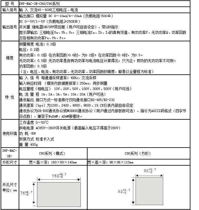 SWP-NAC-3AC ——AC系列三相交流電壓/電流表