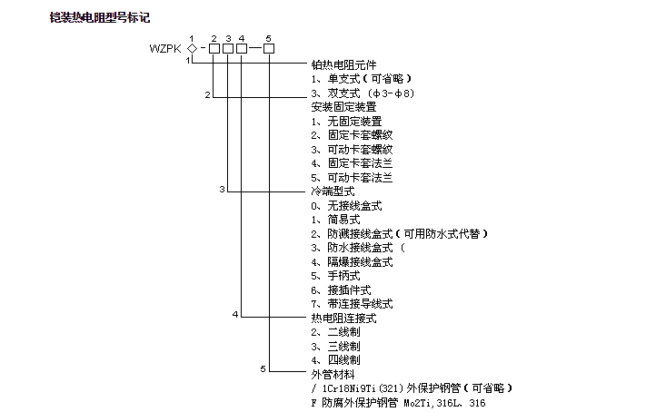 WZPK系列鎧裝鉑熱電阻標準外徑尺寸和套管材質(zhì)
