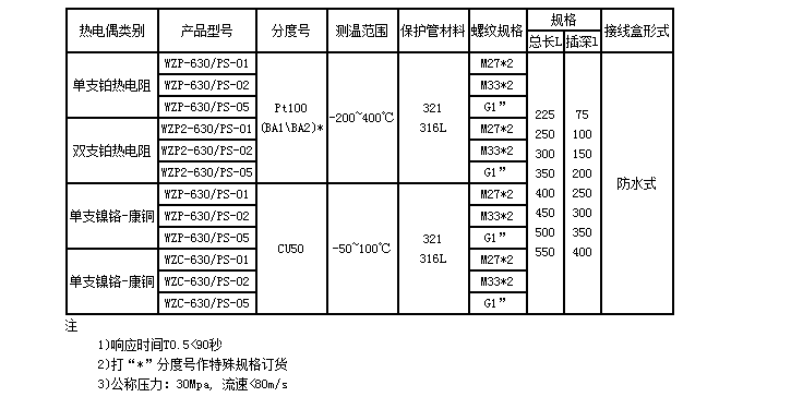 根據國家規定,我廠(chǎng)從1987年起開(kāi)始生產(chǎn)符合lEC國際標準分度號的Pt1OO鉑熱電阻和符合專(zhuān)業(yè)標 準分度號的Cu50銅熱電阻兩大類(lèi)裝配式、統一設計型熱電阻;