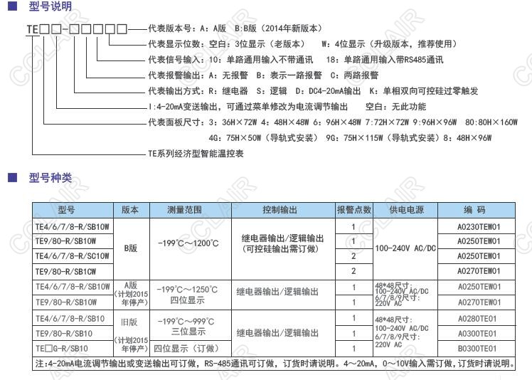 TE4-R10W,TE6-R10W,TE7-R10W,TE8-R10W,TE4-SB10W,TE-W經(jīng)濟型智能溫控表(升級B版)