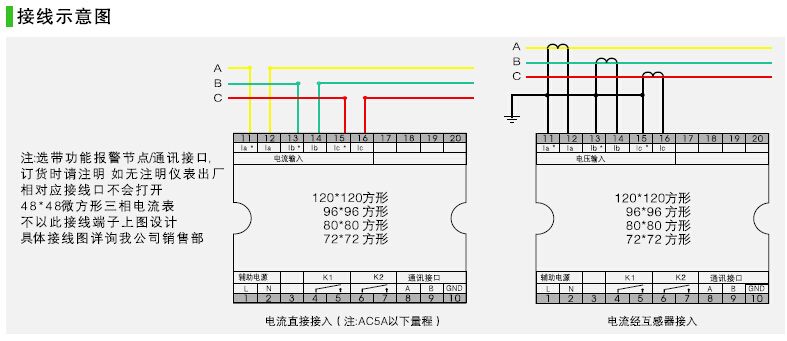 一、數字三相電流表 產(chǎn)品概述 外形尺寸120X120mm 開(kāi)孔尺寸111X111mm