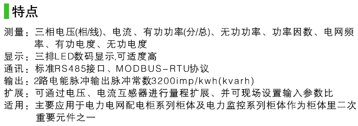 多功能儀表功能:三相電流 三相電壓 頻率 有功功率 無(wú)功功率 功率因數