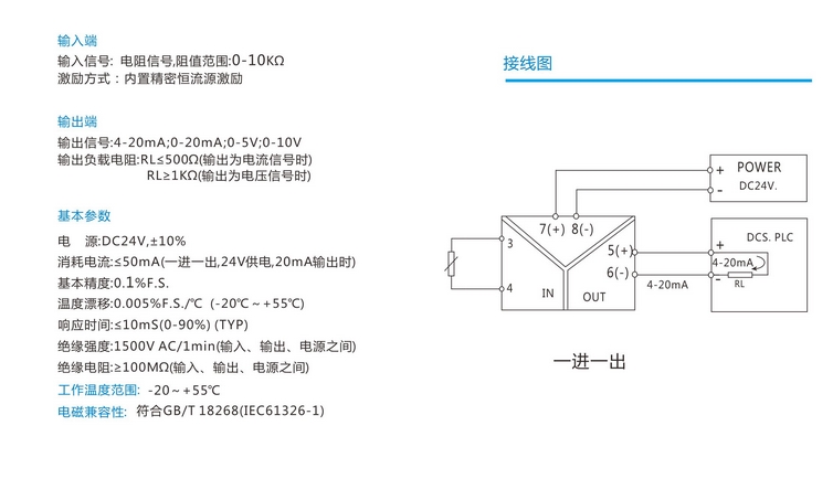 電阻信號隔離器、變送器輸出范圍:0-20mA、4-20mA、0-5V、0-10V、1-5V等用戶(hù)需要的標準信號